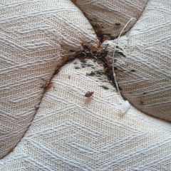 CHINCHE DE CAMA: Se pueden encontrar en grietas y hendiduras, así como en las costuras de los colchones, las sábanas, los muebles y en las cabeceras y bases de las camas, se alimentan de la sangre humana y cualquier animal de sangre caliente,Las machas de sangre sobre los colchones y en los muebles son también signos de una infestación de estos insectos. Las chinches de la cama no portan o transmiten enfermedades pero su picadura produce irritación e incluso infección. También puede causar comezón y dejar bultos o manchas rojas. La picadura de las chinches de la cama puede ser similar a la de otros insectos.